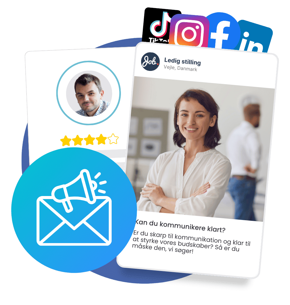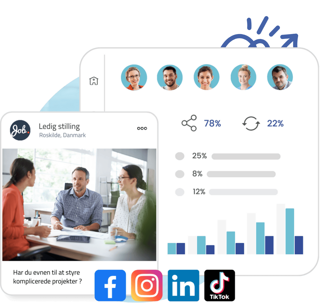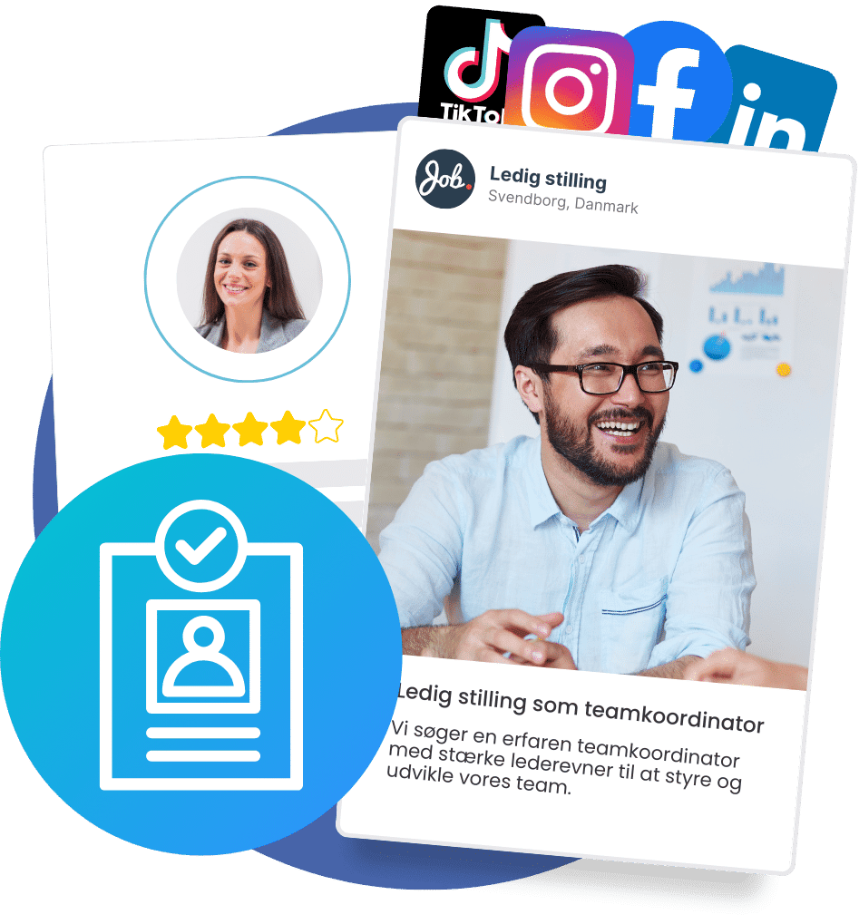 Vi opsætter en motiverende jobkampagner på sociale medier, hvor passive jobsøgende via screeningsspørgsmål kan teste deres match med jobbet. Du får direkte adgang til at se de kvalificerede kandidater.