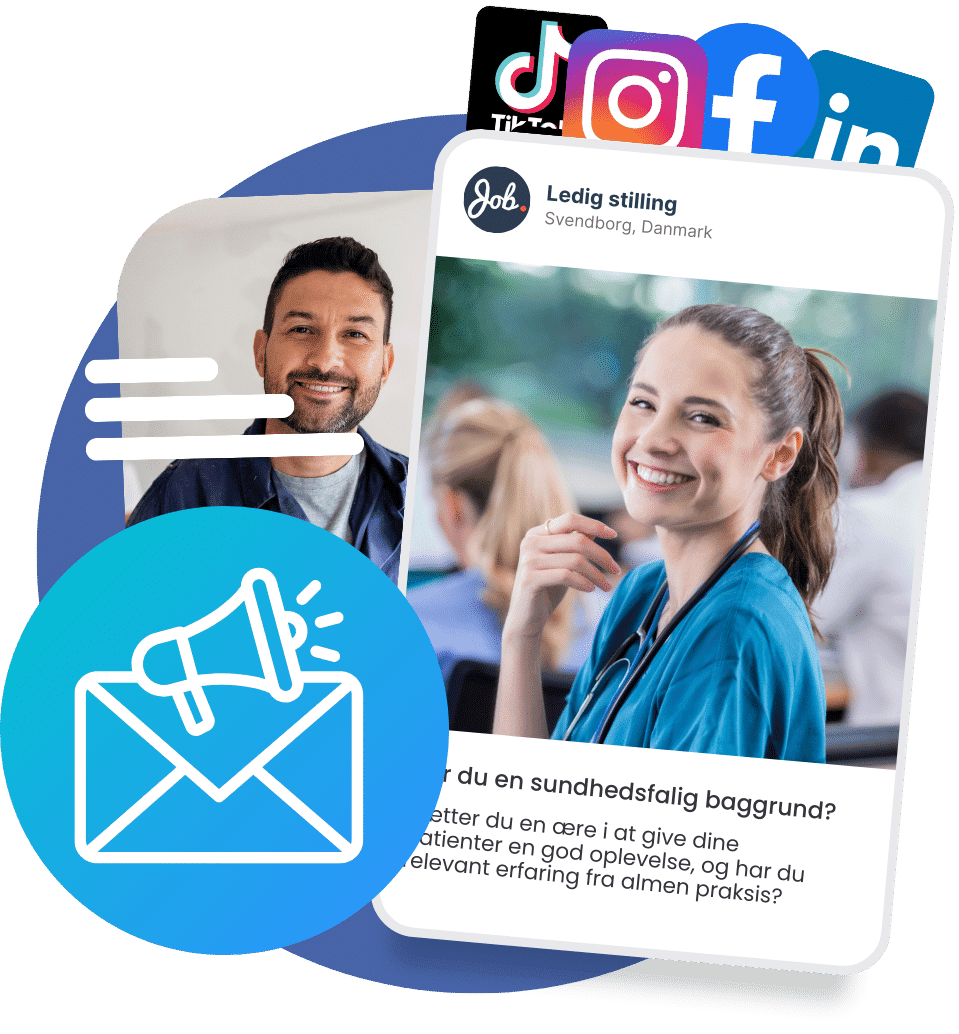 Tiltræk passive kandidater med målrettede SoMe-kampagner. Vi opsætter din jobannonce og sender personlige e-mails med jobdetaljer og ansøgningslink til potentielle kandidater.